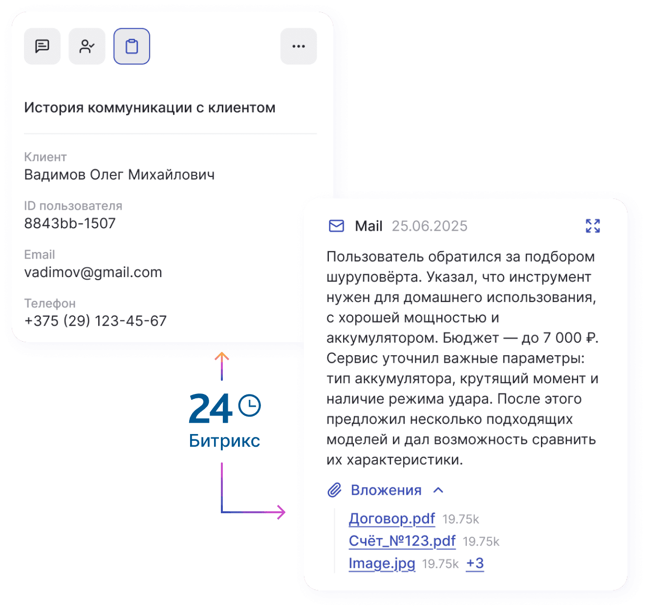 В едином интерфейсе ИИ предлагает готовые подсказки и варианты ответа, помогая реагировать быстрее и точнее.